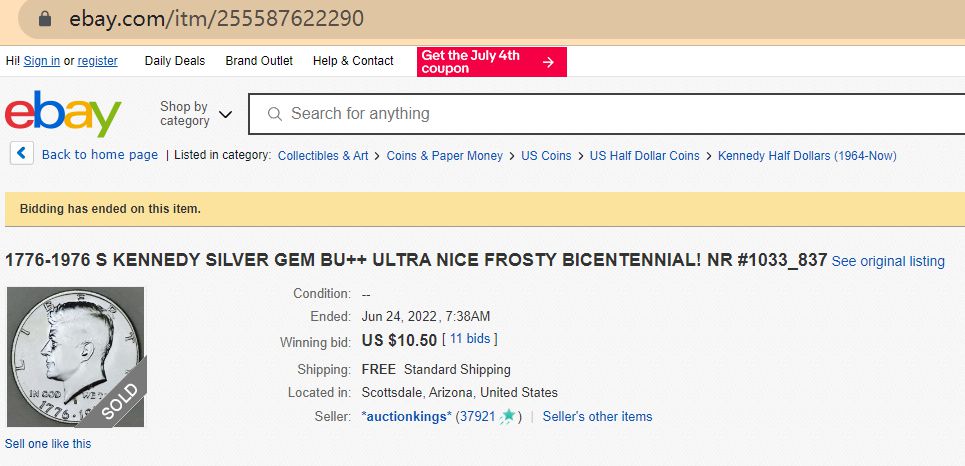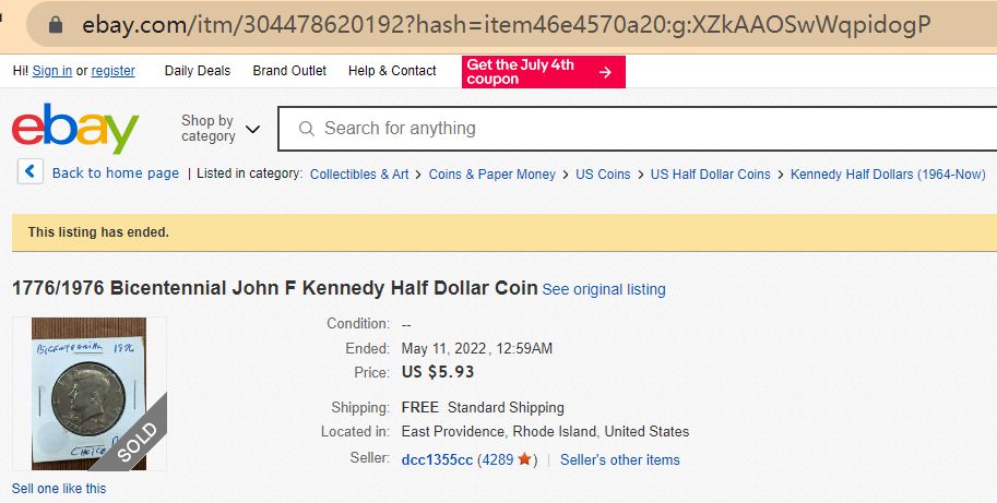 On the other hand, a 1776 – 1976 bicentennial half dollar in uncirculated condition sold for $5.93. However, you should expect one with an error to sell for much higher because of its rarity.