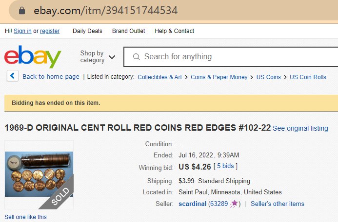 - A roll of 1969 different pennies sold for almost $5.