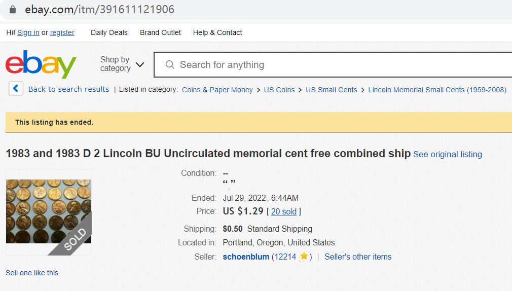 - Uncirculated 1983 and 1983 D pennies sold for $1,29.